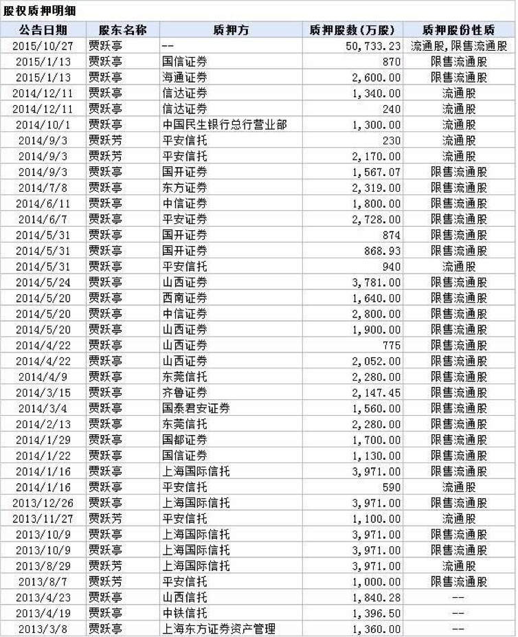 图为贾跃亭个人股票质押融资情况